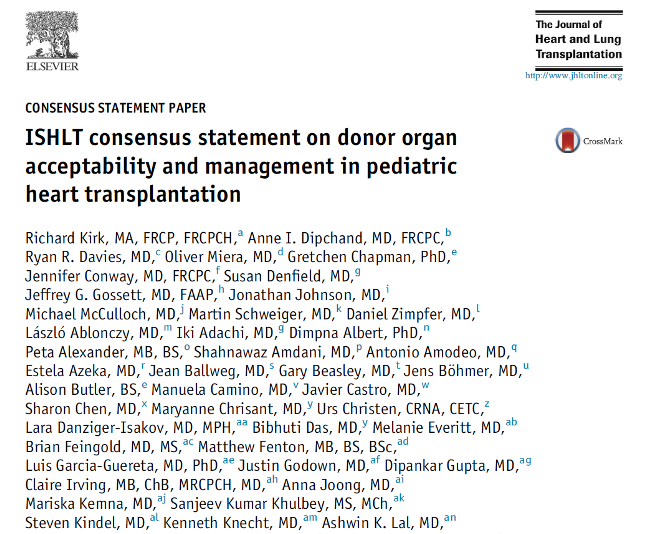 Recently consensus on organ acceptability in pediatric heart transplantation donor (J Heart Lung Transplant. 2020 Apr;39(4):331-341)