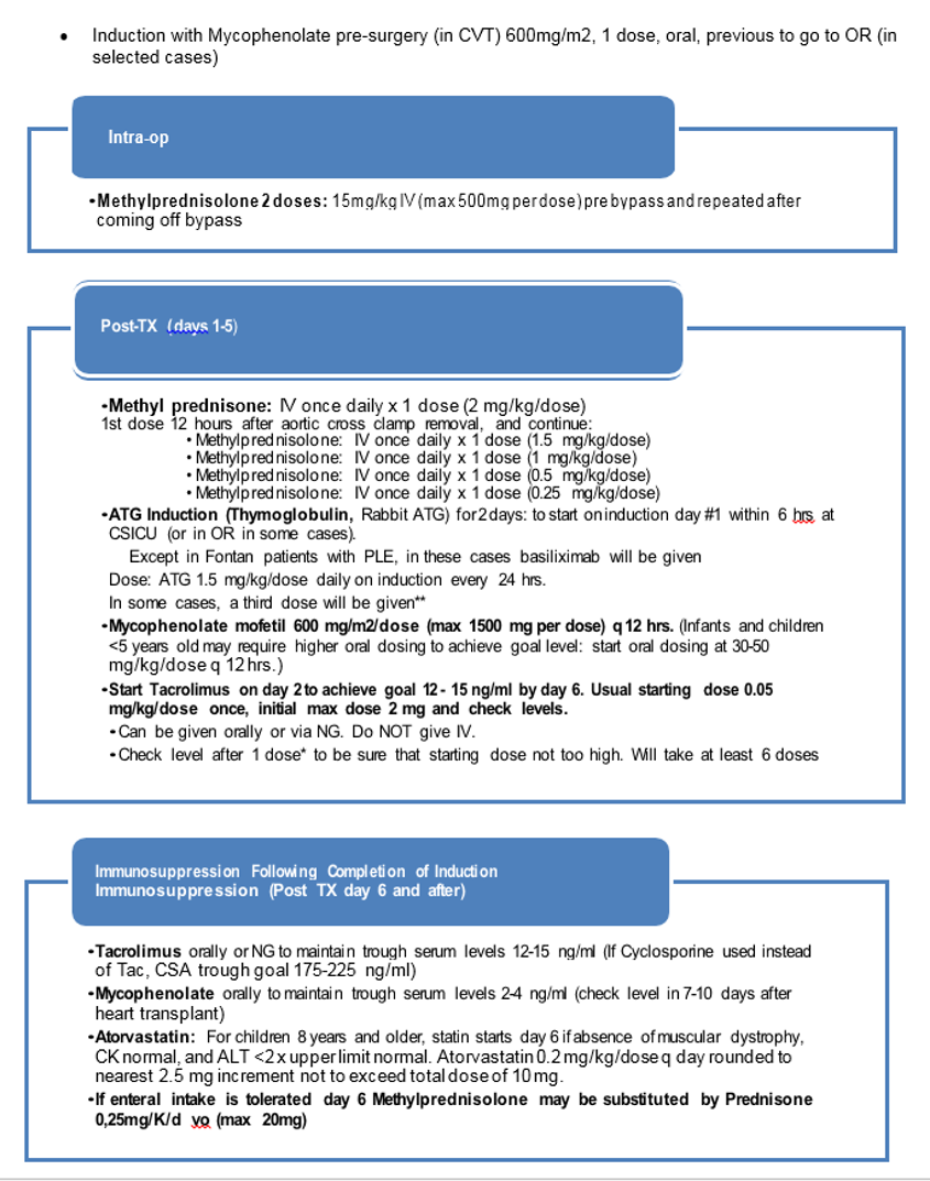 Pediatric Heart Transplant (II) Basic of immunosuppression treatment. Management of rejection and infections in pediatric heart transplant. Information for patients and relatives. Outcomes of heart transplant and indications of retransplantation